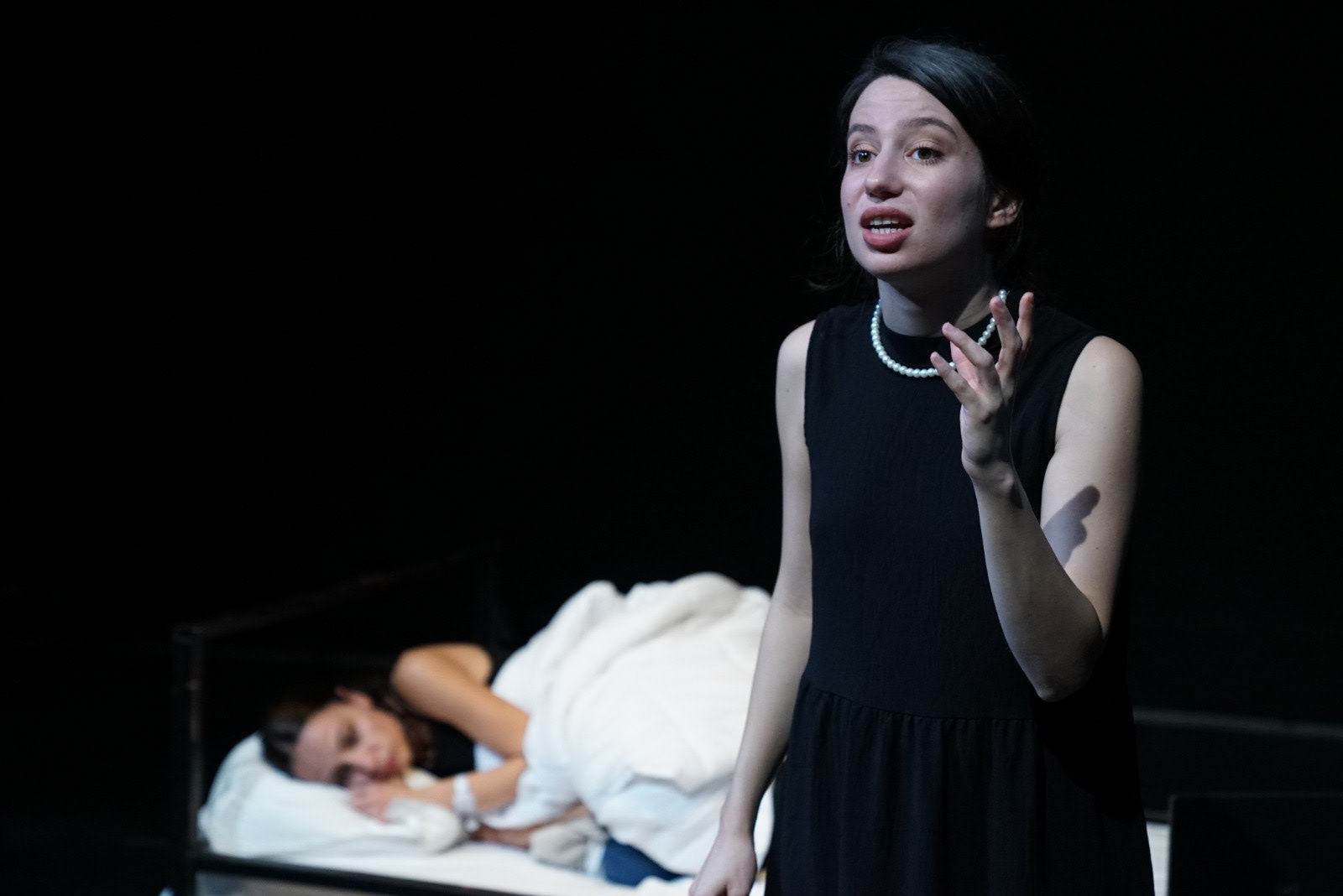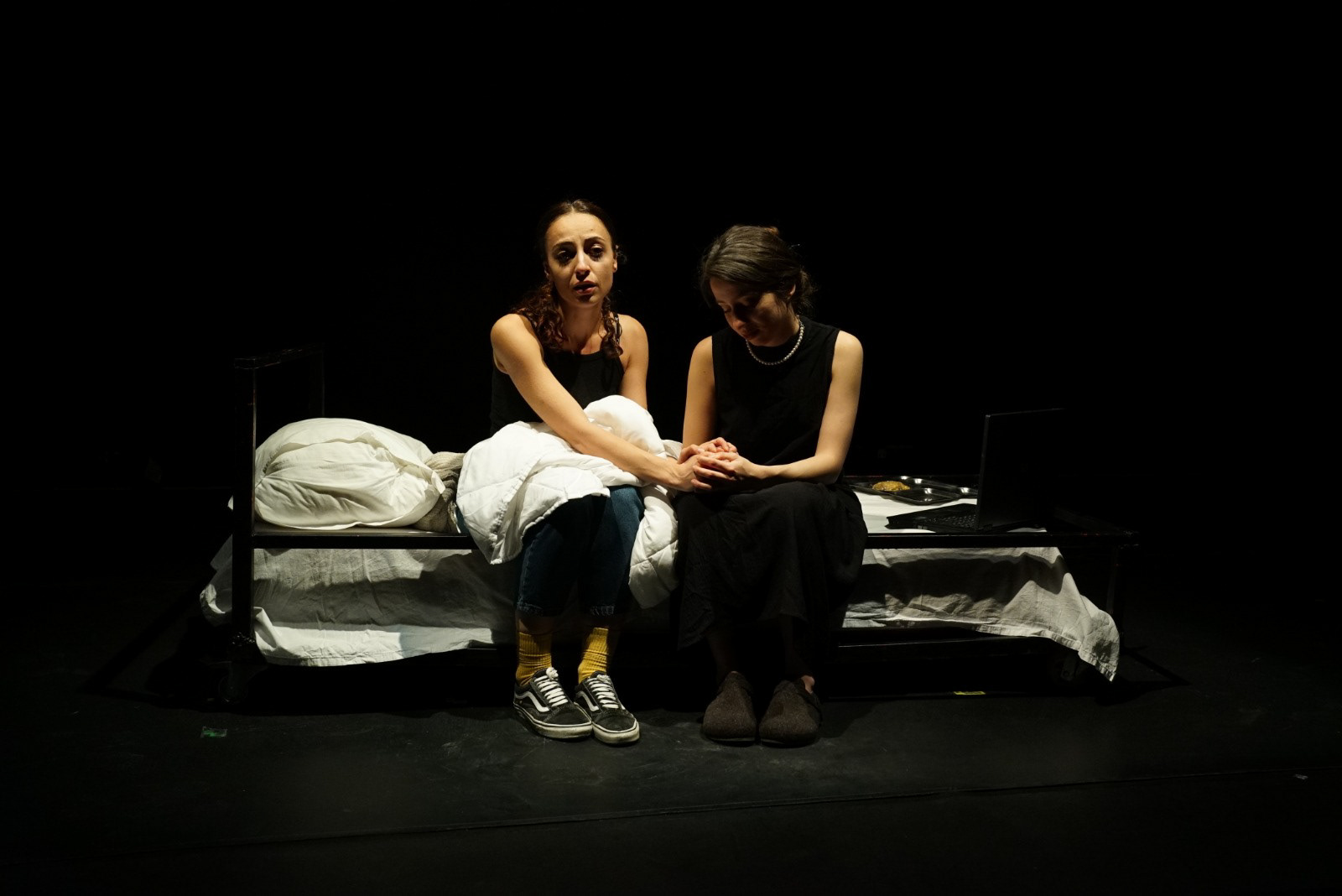 Playwright: Murat Mahmutyazıcıoğlu Director: Büke Erkoç Performers: Stephanie Zeit, Rachel Bannermen, Mégane Degousée Stage Manager: Elyse Waugh Assistant Stage Managers: Lauren Lacey, Sebastian Lima Santos Scenic Design: Snezana Pesic Lighting Design: Lauren Lacey Projection Design: Lauren Lacey and Nicole Eun-Ju Bell Sound and Costume Design: Sandy Szalai Props Master: Grace Faria Poster Design: Ece Doğan Production Manager: Giuseppe Condello Supervisor: Leah Cherniak Production Photos: Brittany Chan